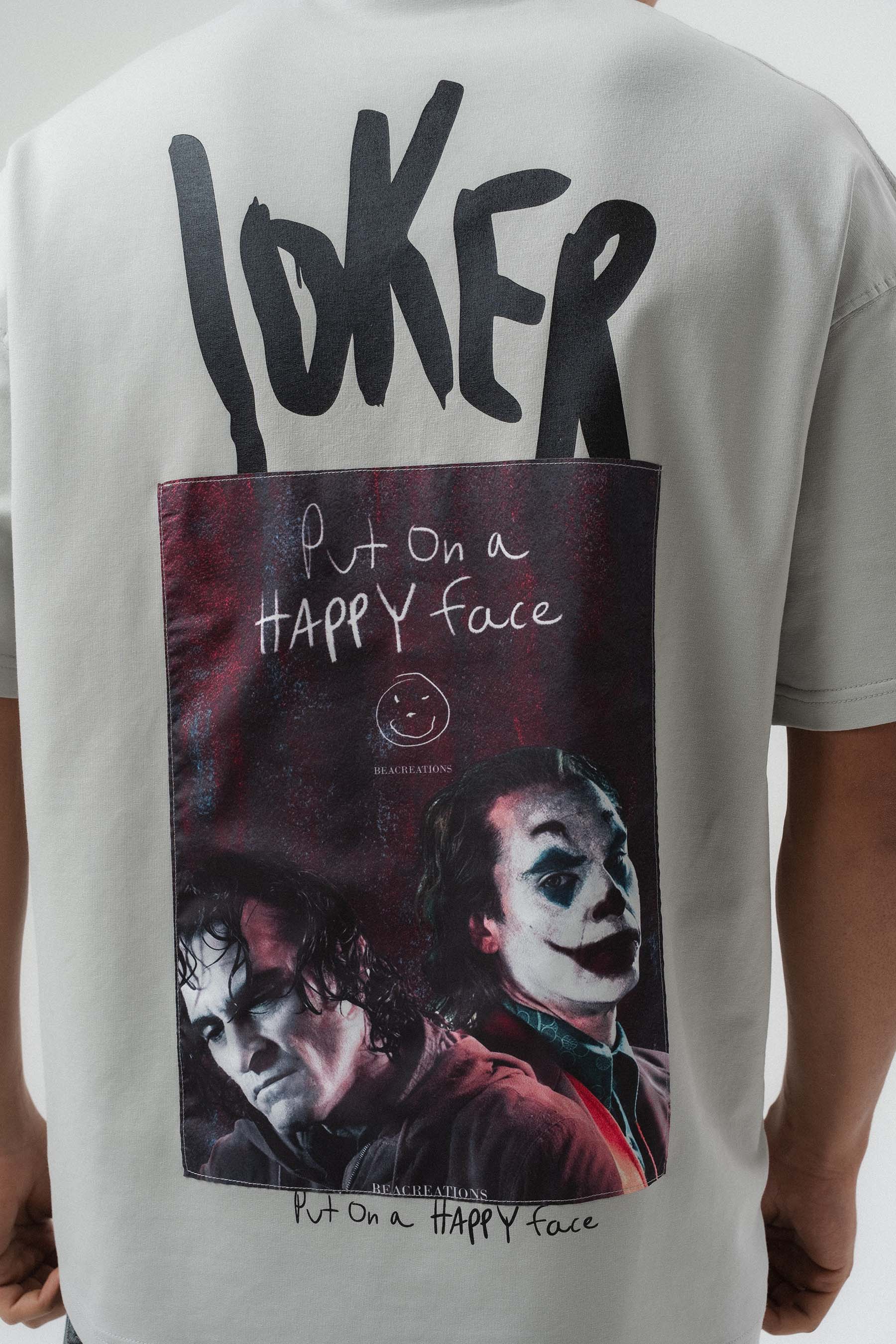 Joker Put On Happy Face Baskılı Oversize Baskılı T-Shirt, oversize kalıbı sayesinde rahat bir kullanım sunar. baskı odaklı tasarım sokak stilinde öne çıkar. Günlük kombinlerde tek başına dikkat çeken bir parçadır.