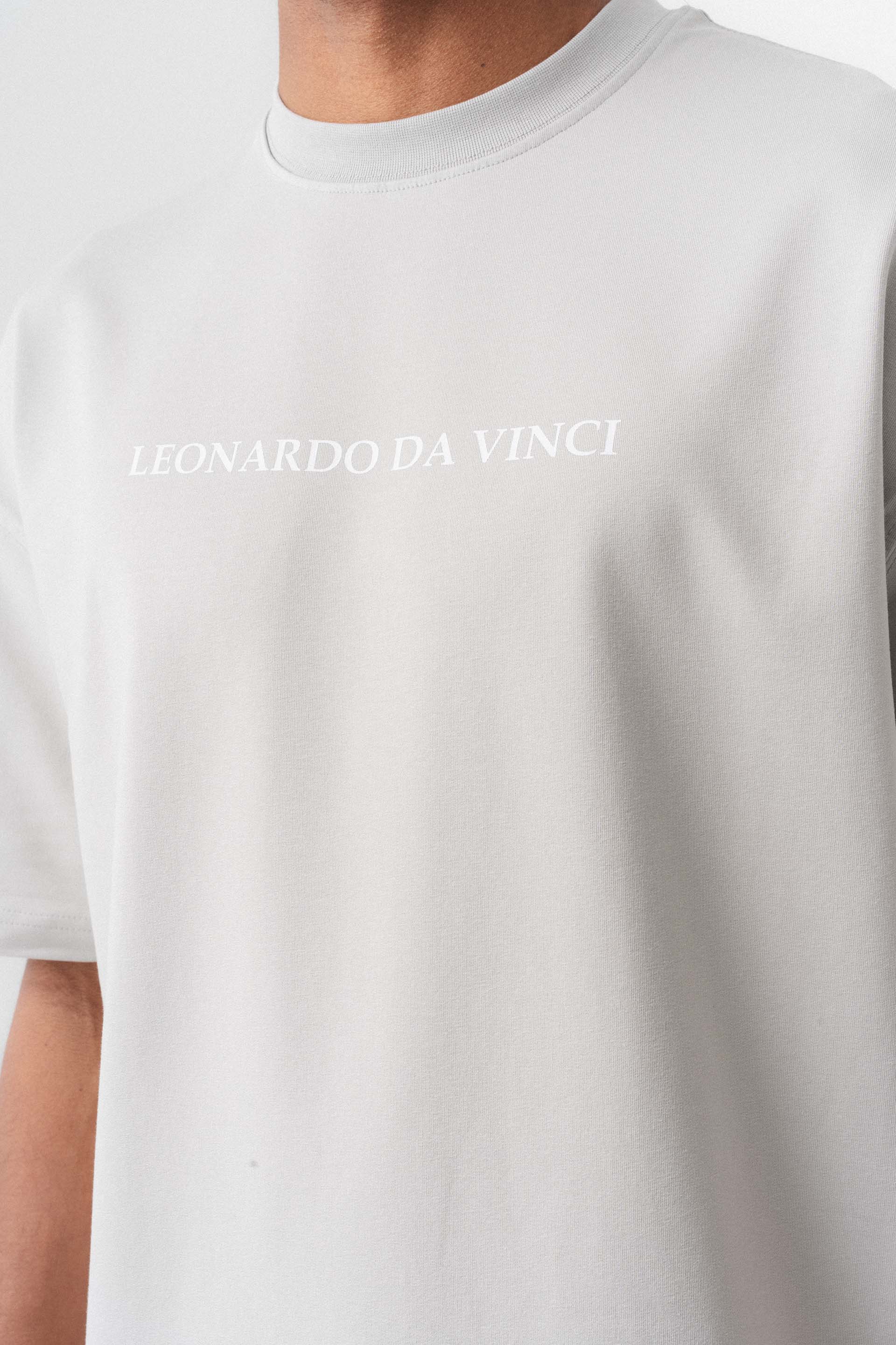 Leonardo Da Vinci Gri Oversize Baskılı T-Shirt Leonardo Da Vinci Gri Oversize Baskılı T-Shirt