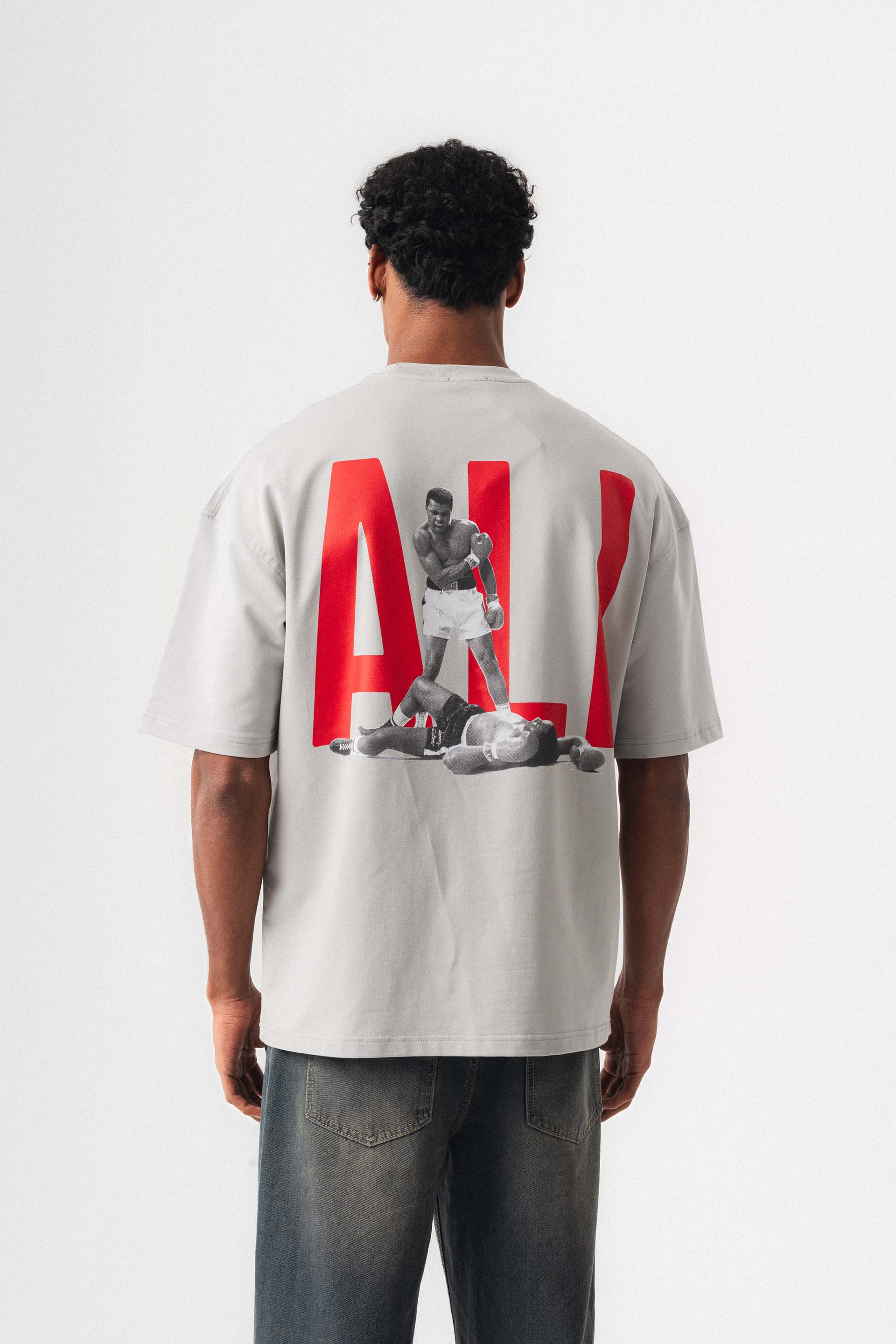 • Muhammed Ali Gri Oversize Baskılı T-Shirt