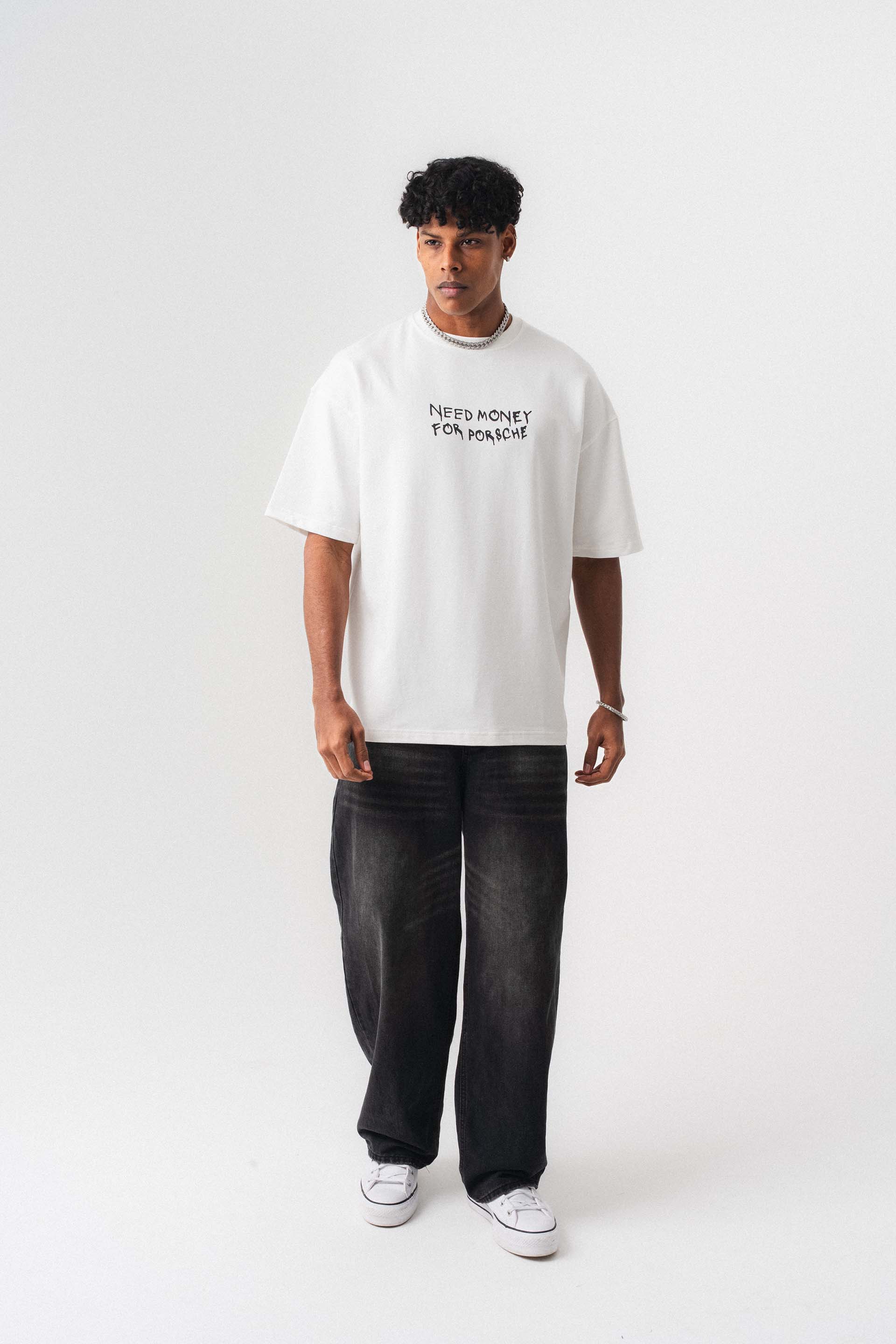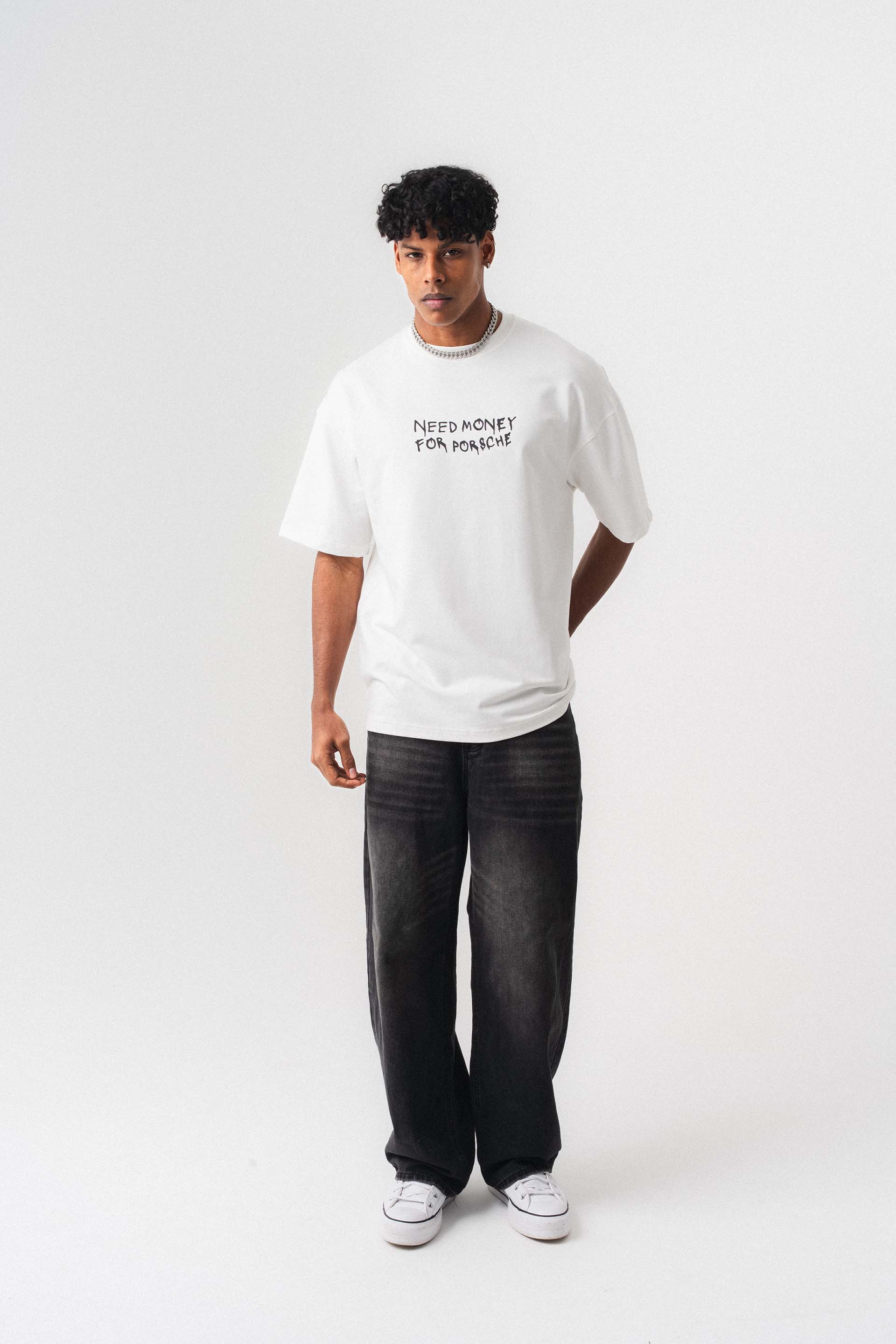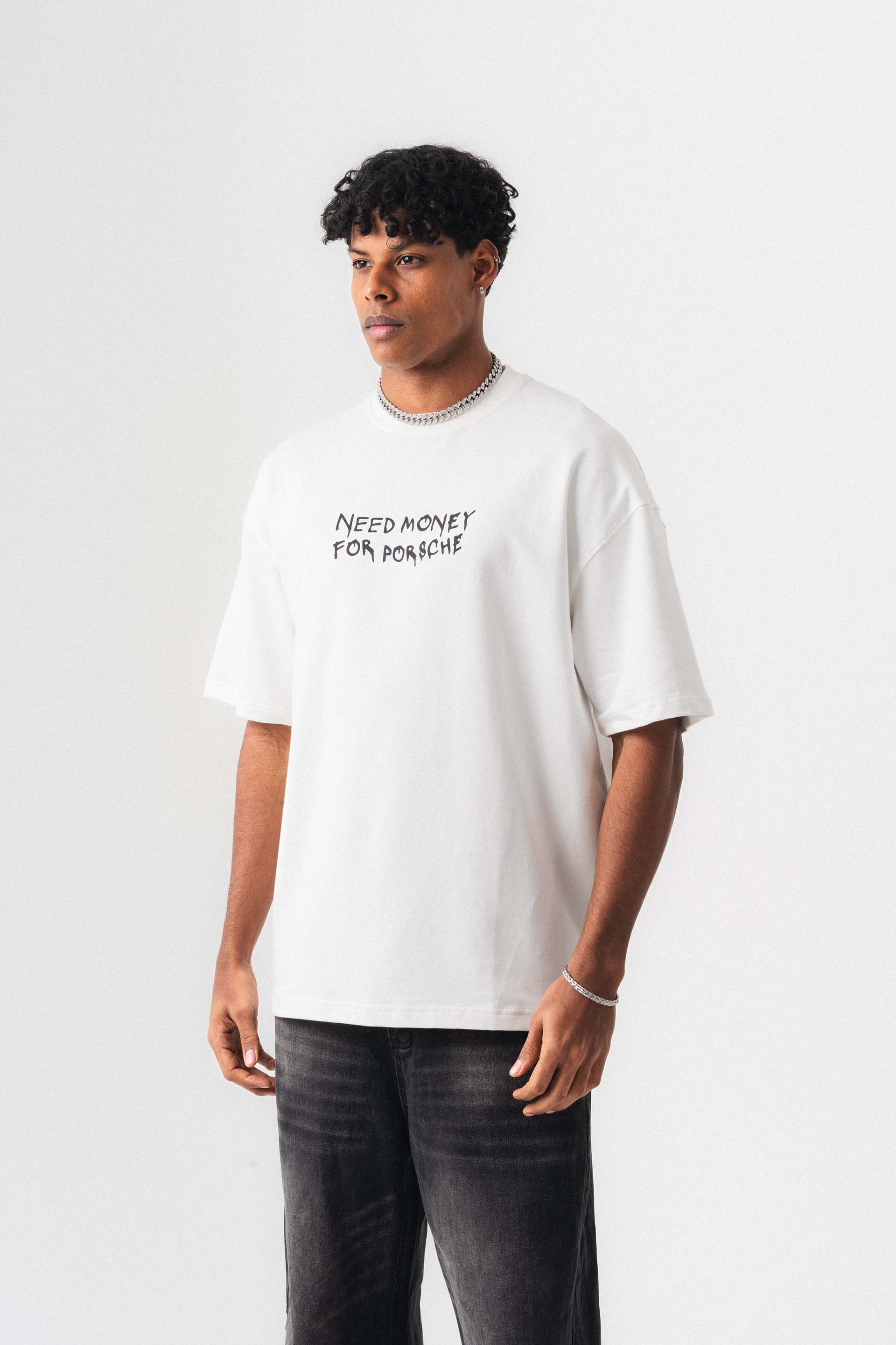 Need Money For Porsche Beyaz Oversize Baskılı T-Shirt Need Money For Porsche Beyaz Oversize Baskılı T-Shirt