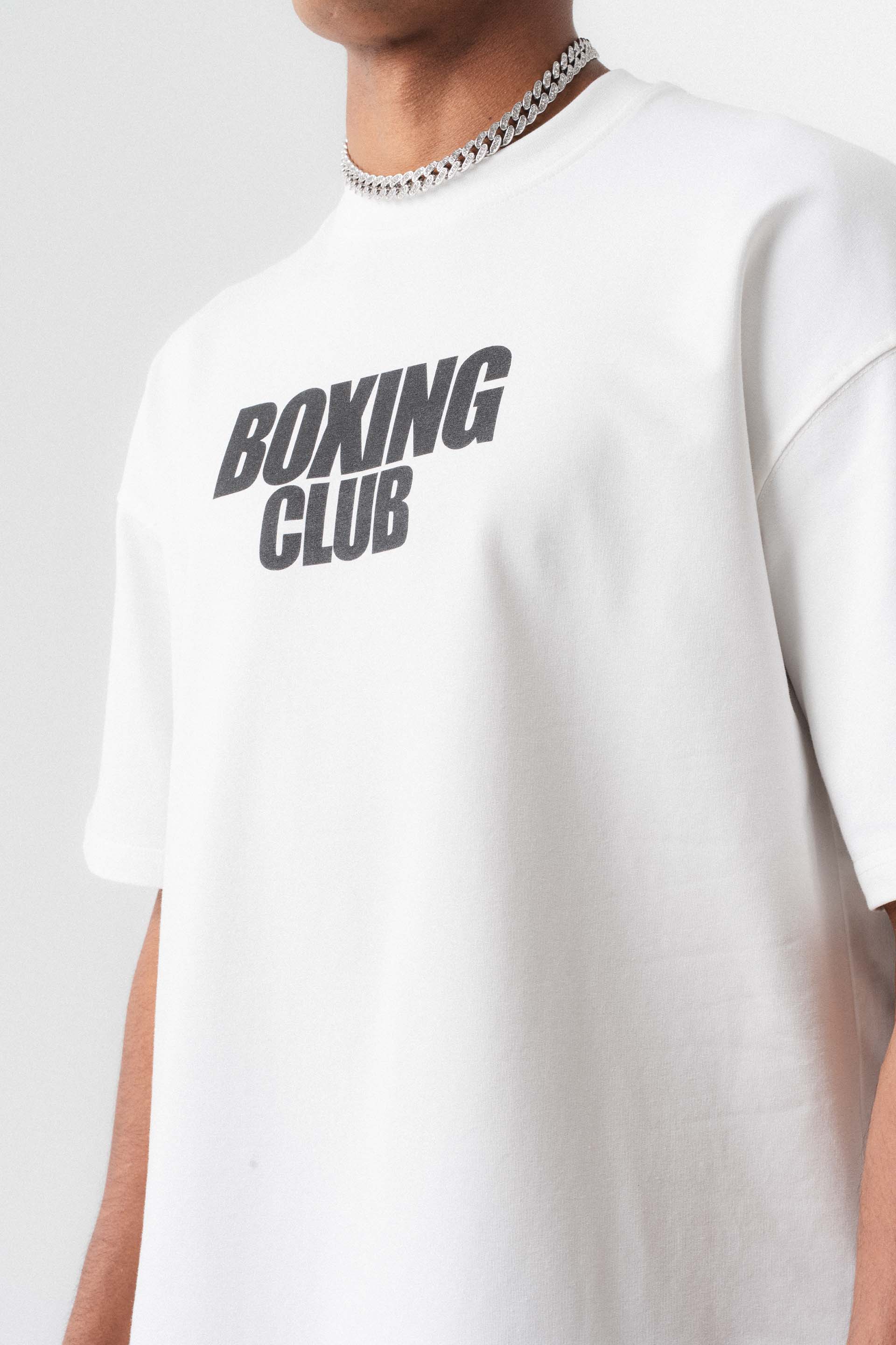 Boxing Club Baskılı Oversize T-Shirt Beyaz