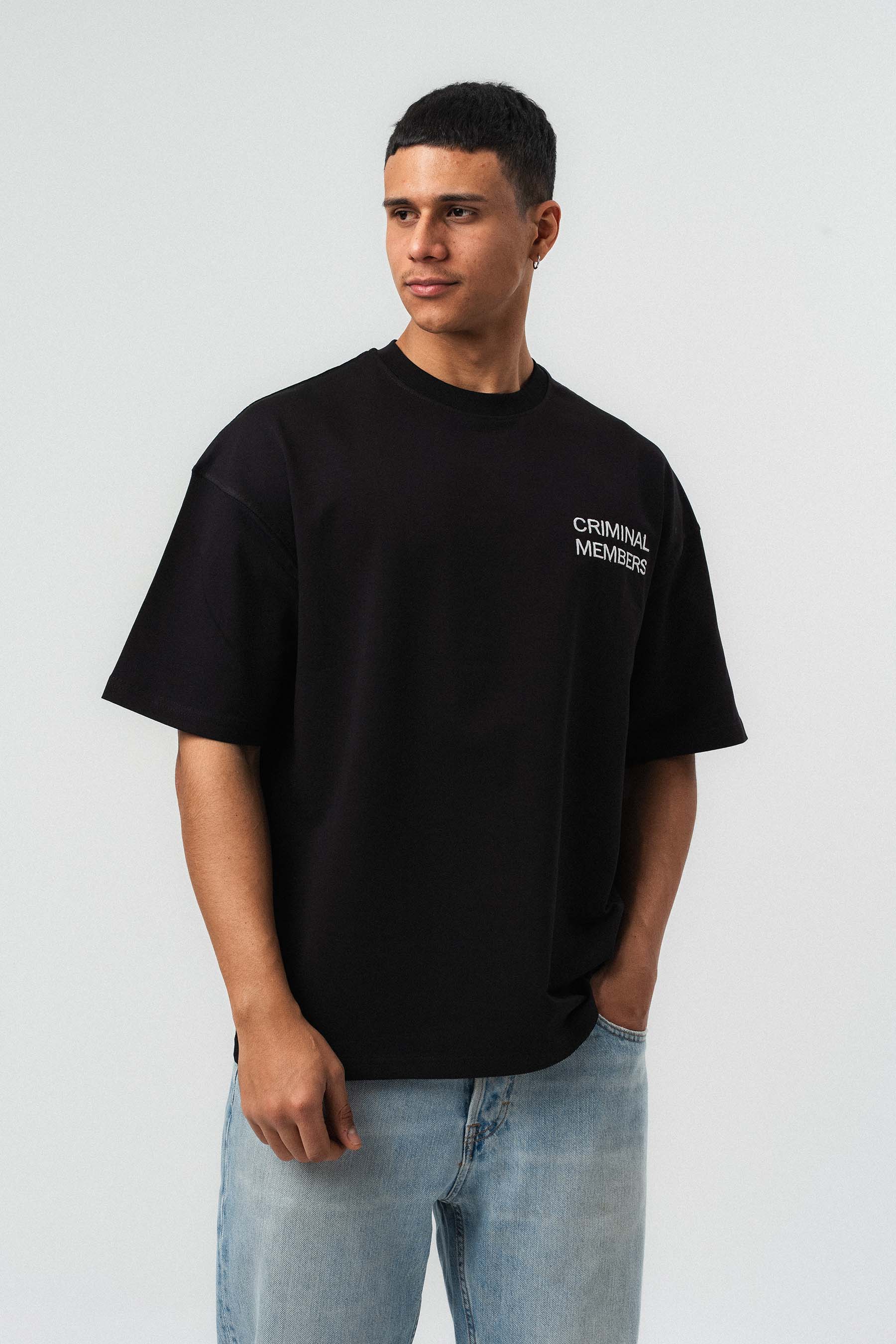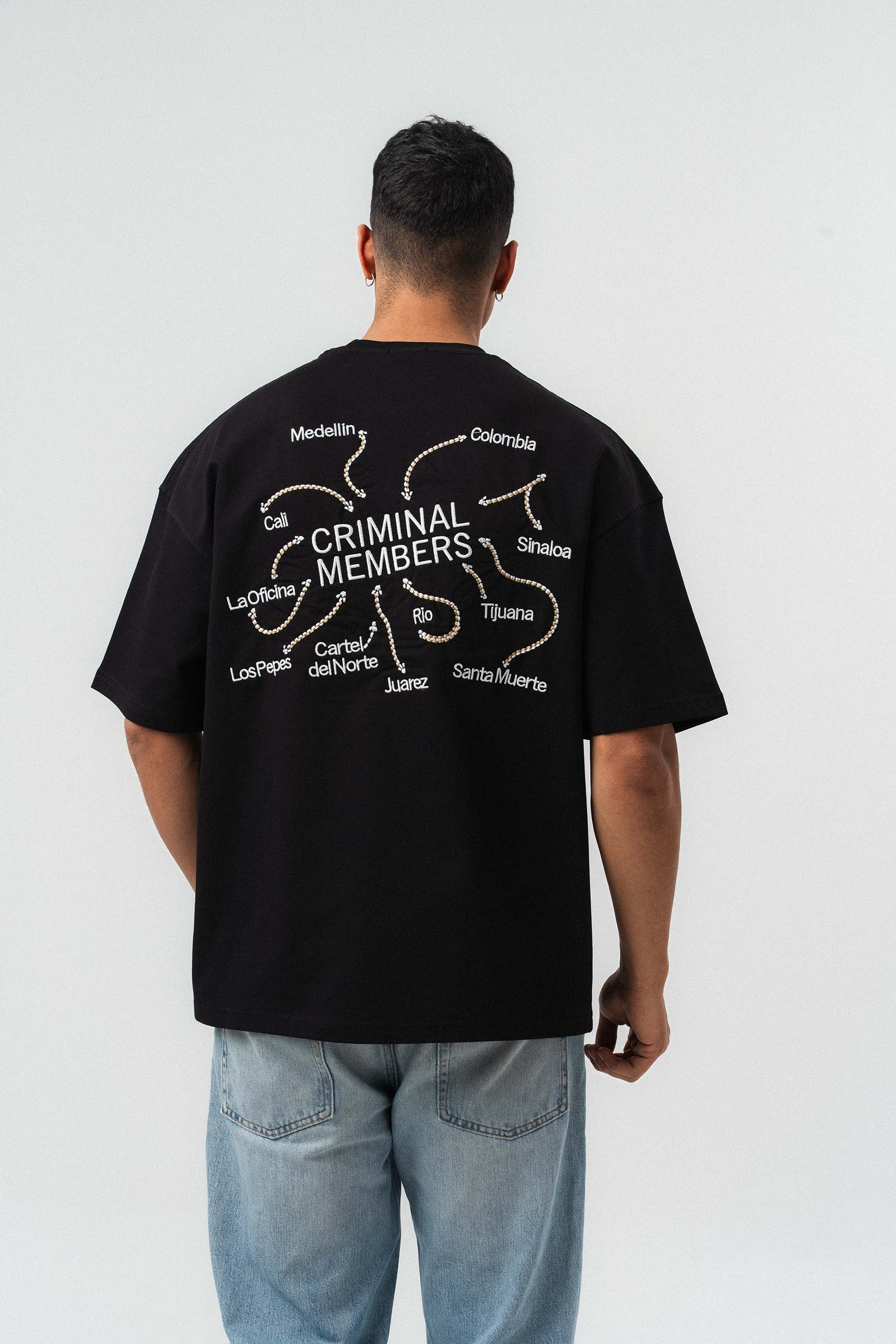 Criminal Members Nakış Detaylı Siyah Oversize Baskılı T-Shirt
