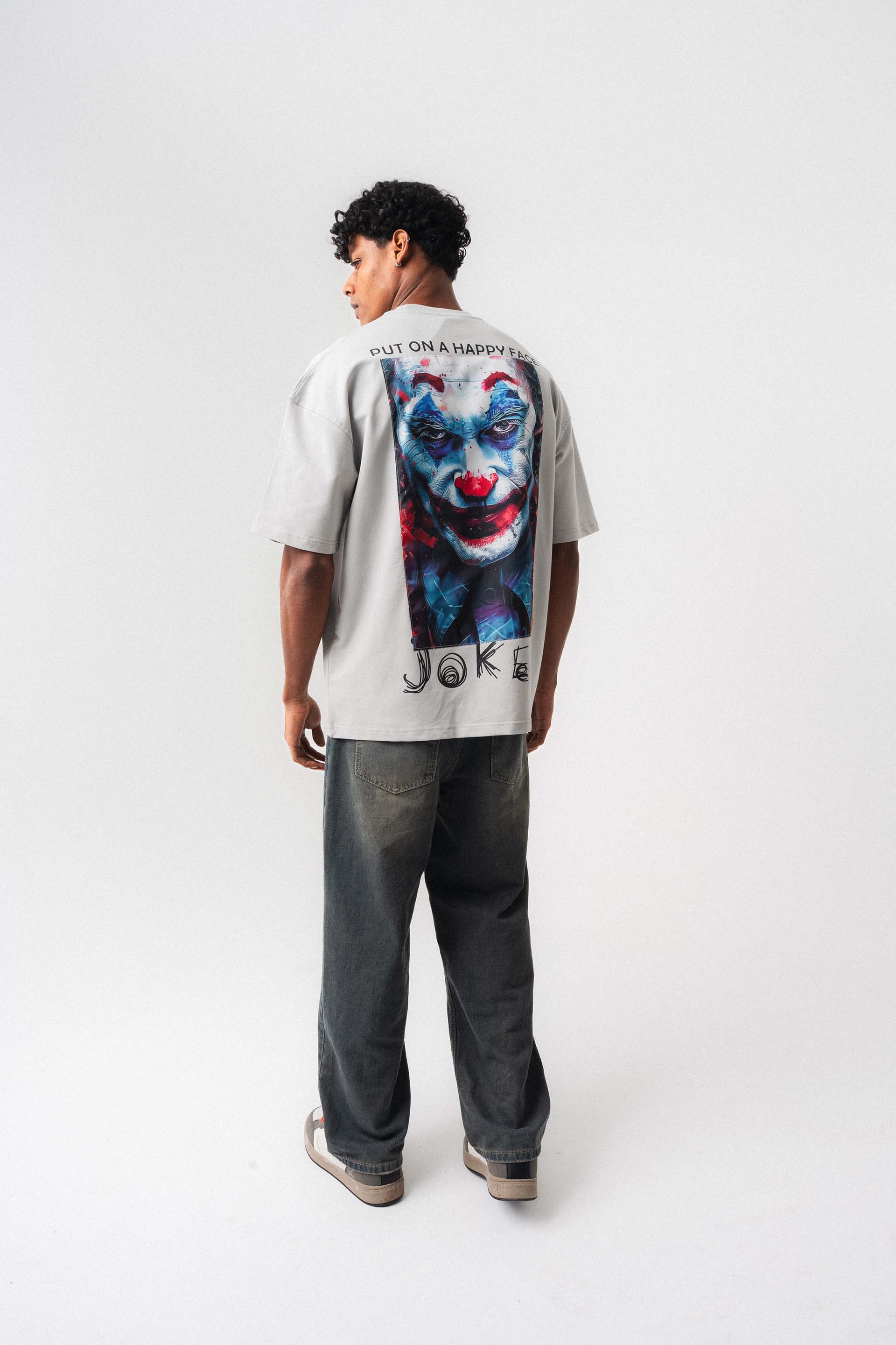 Joker Put On Happy Face Gri Oversize Baskılı T-Shirt