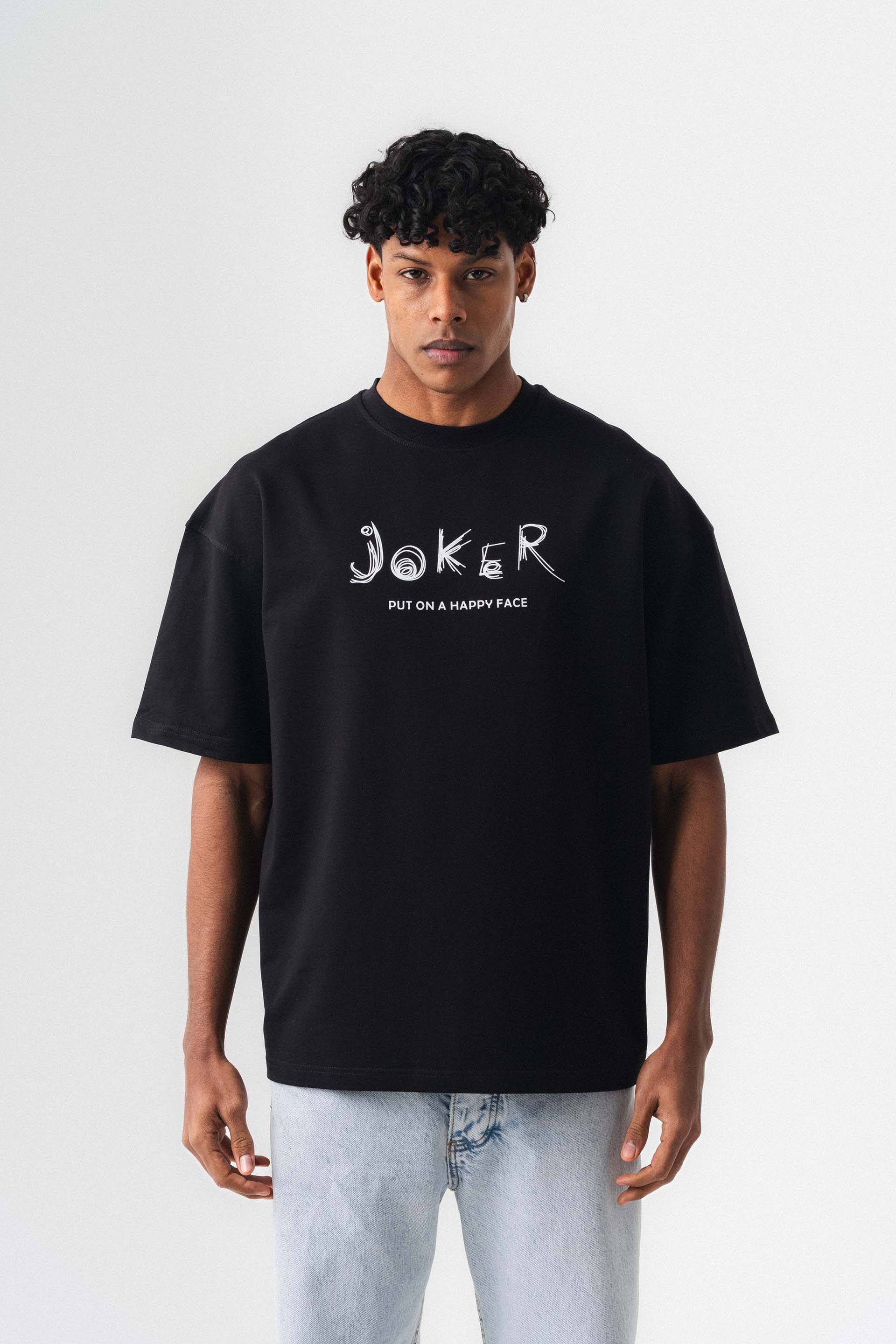Joker Put On Happy Face Siyah Oversize Baskılı T-Shirt