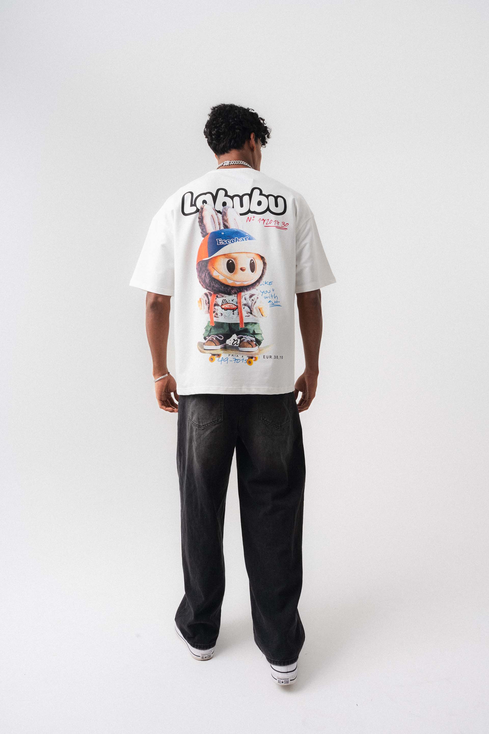 Labubu Beyaz Oversize Baskılı T-Shirt