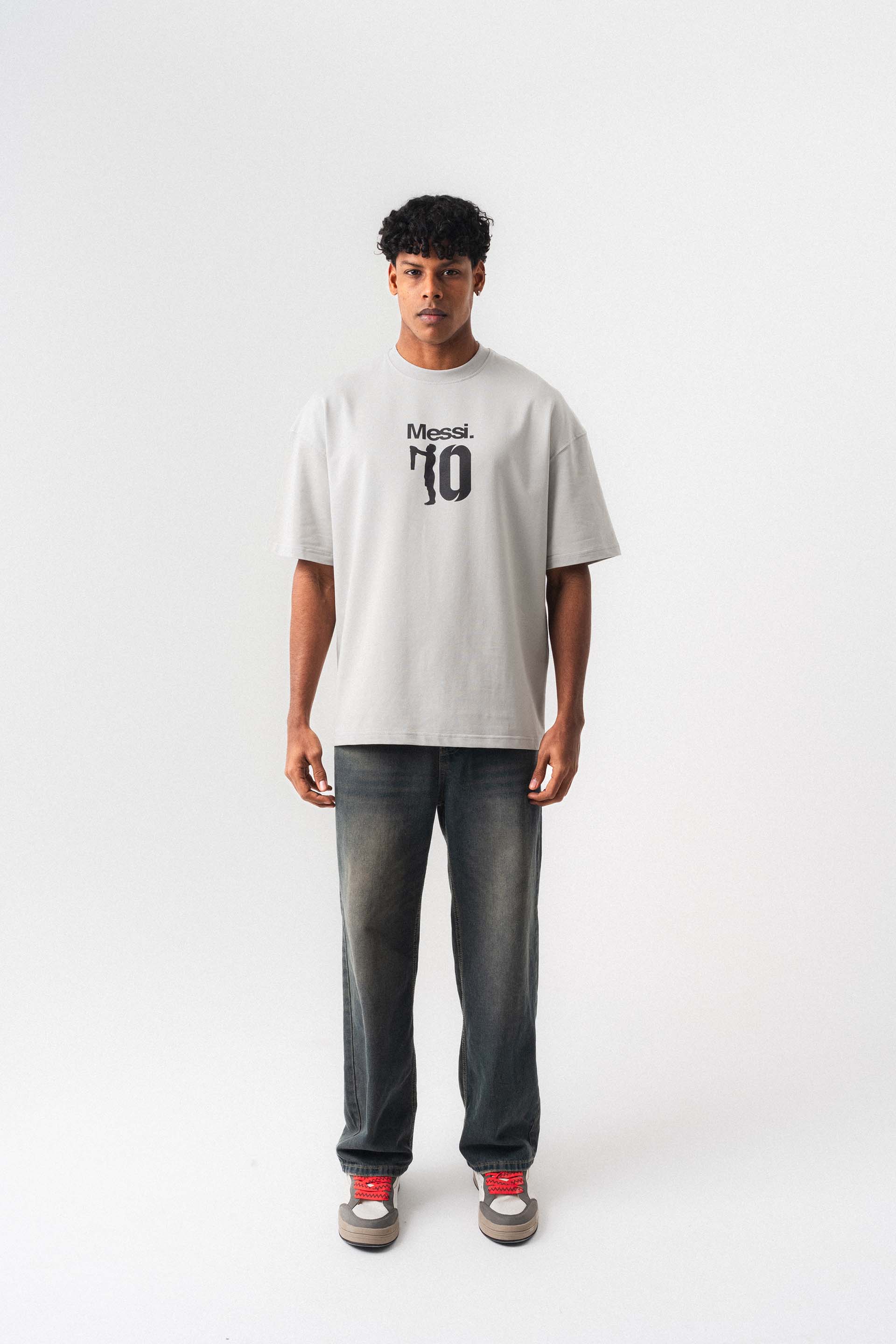 Messi 10 Gri Oversize Baskılı T-Shirt