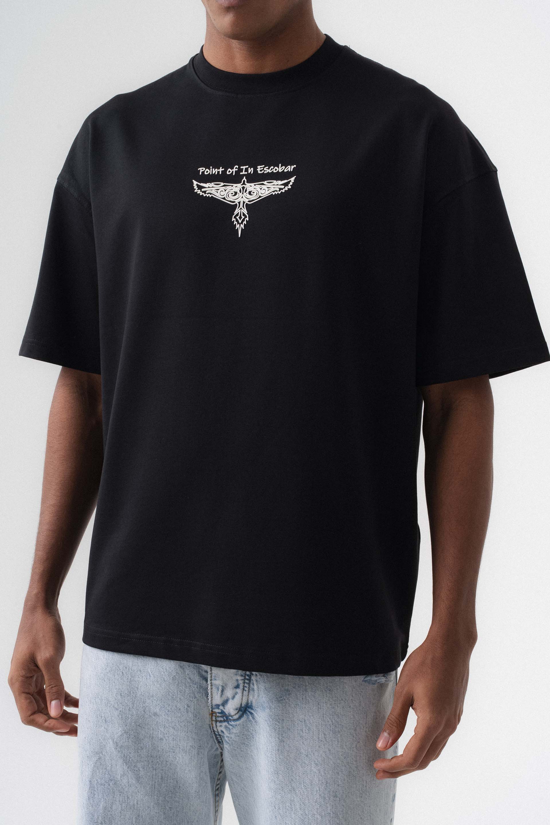 Point Of In Escobar Siyah Oversize Baskılı T-Shirt