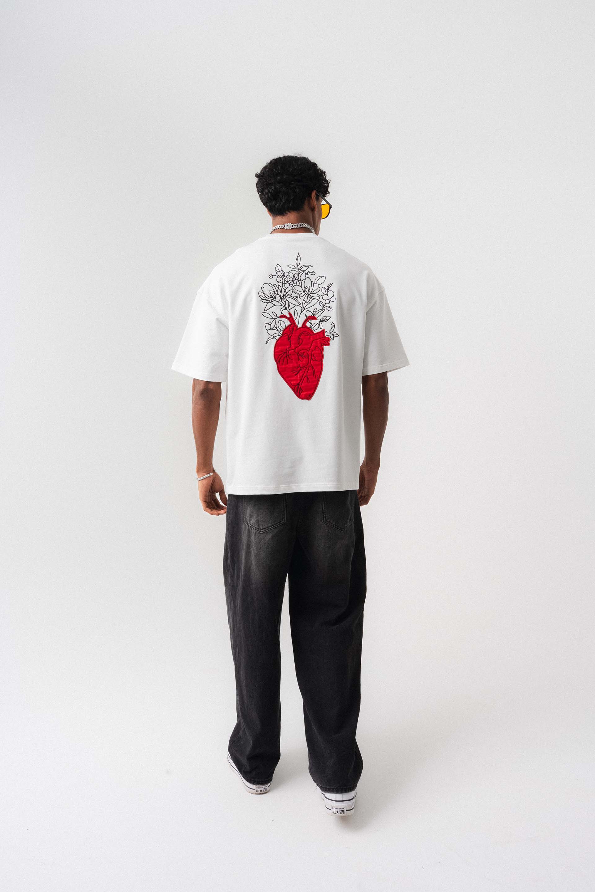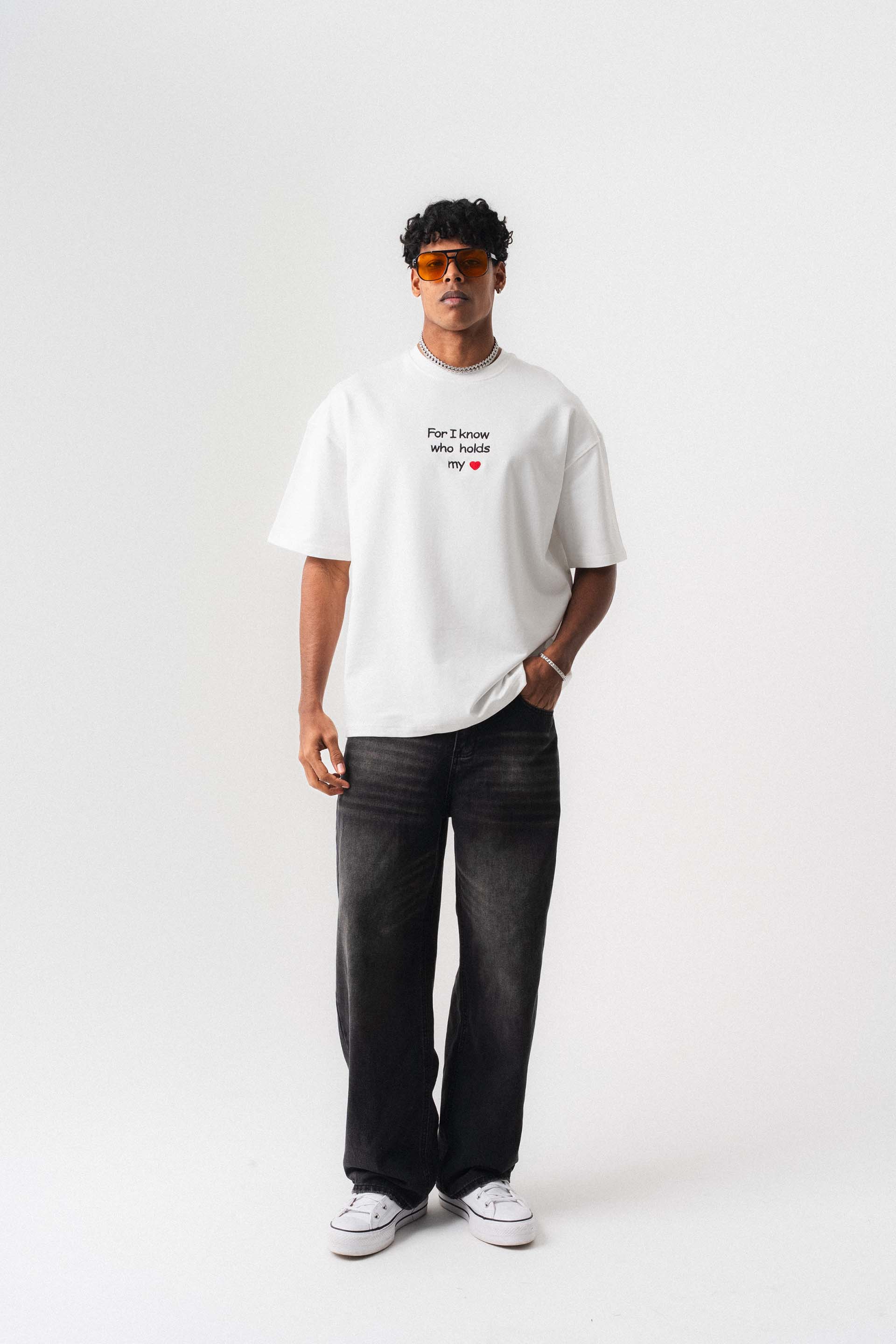 Who Holds My Heart Beyaz Oversize Baskılı T-Shirt