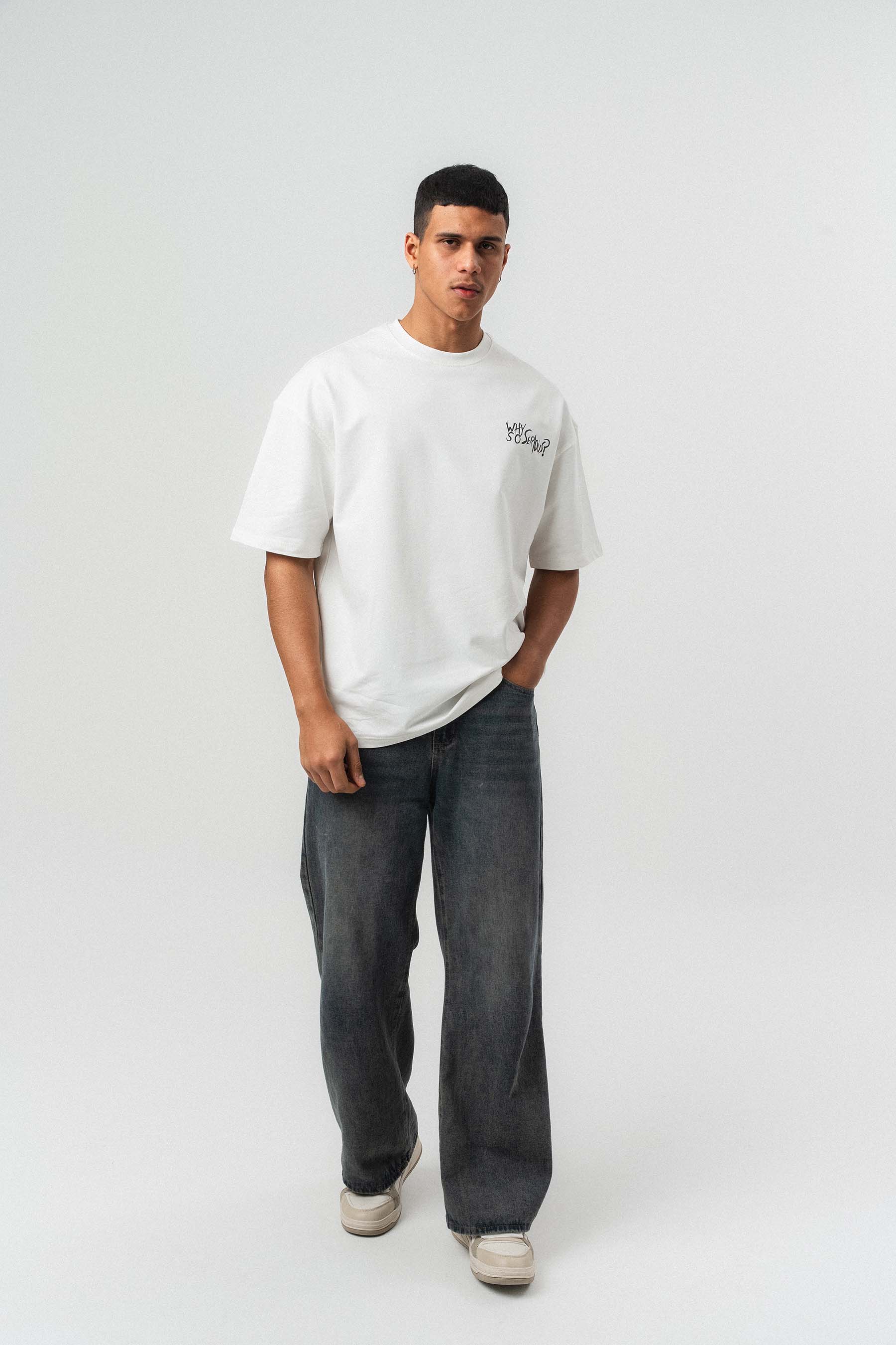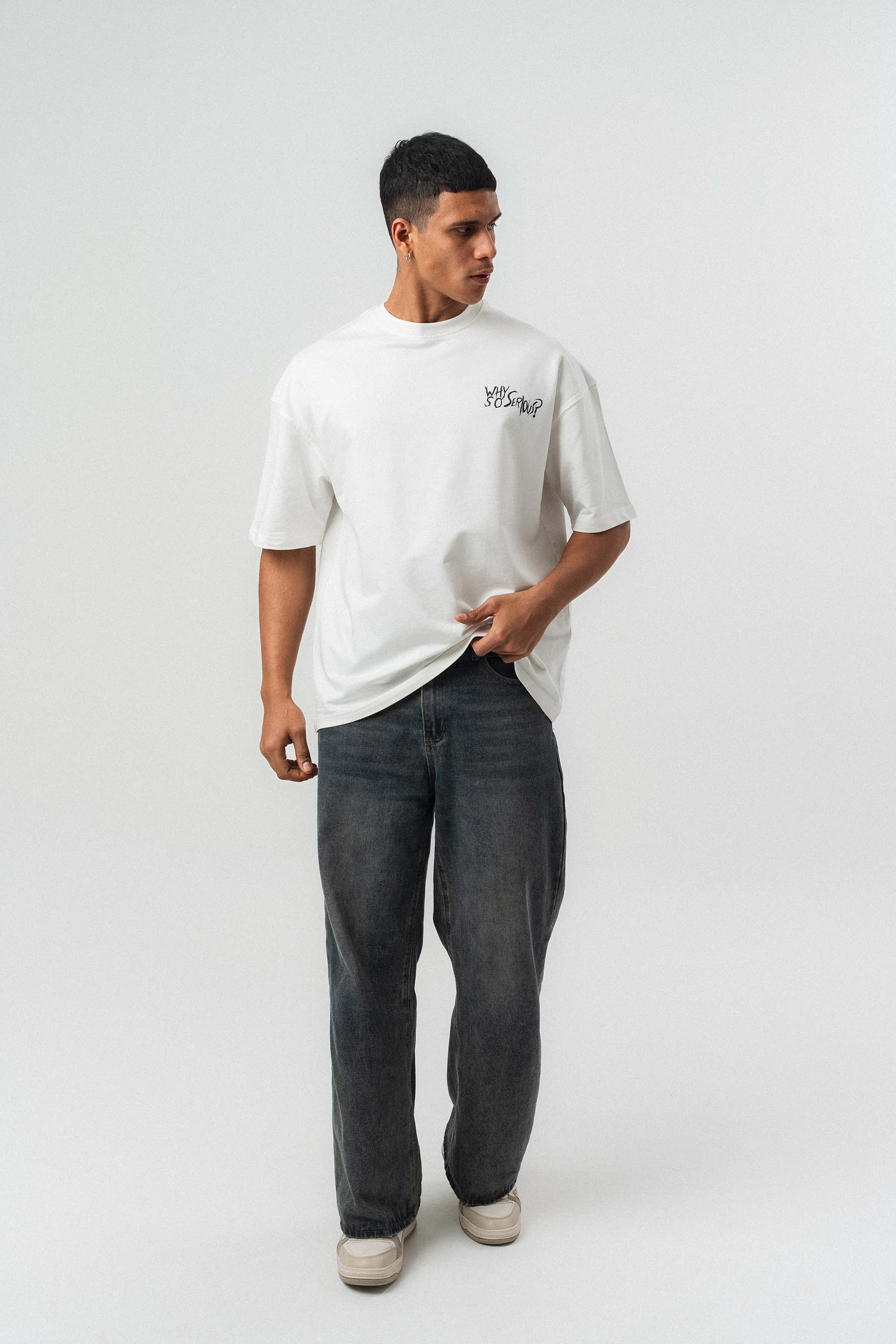 Why So Serious Nakışlı Beyaz Oversize Baskılı T-Shirt